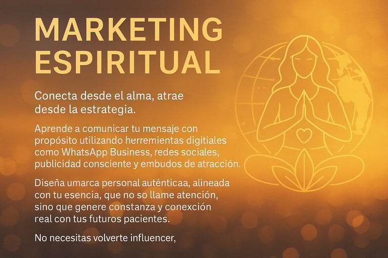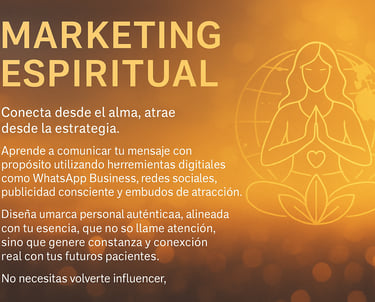 Aprende a comunicar tu mensaje con propósito utilizando herramientas digitales como WhatsApp Business, redes sociales, publicidad consciente y embudos de atracción. Diseña una marca personal auténtica, alineada con tu esencia, que no solo llame la atención, sino que genere confianza y conexión real con tus futuros pacientes. No necesitas volverte influencer, solo aprender a brillar con claridad.